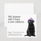 Meu Humano E Eu Temos Um Novo Endereço! Deixe o seu melhor amigo anunciar sua jogada com este cartão de anúncio giro e engraçado. Personalize os nomes do cão ou gato e o seu novo endereço. Este anúncio em movimento do labrador negro é um imperativo para todos os amantes do labrador e amantes do cão. COPYRIGHT © 2020 Judy Burrows, Black Dog Art - Todos Os Direitos Reservados. Anúncio de Movimentação do Cachorro Preto Labrador de Cute Orçamentário