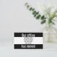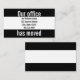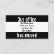 Esta placa de gabinete preto e branco tem três campos. Juntos, os campos negros dizem: "Nosso escritório mudou". Use o campo branco para personalizar seu cartão postal com o nome, endereço e número de telefone da sua empresa.