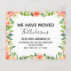 Pêssego do Orçamento - Coral e Eucalyptus Greenery Moderno e Elegante Primavera Floral de Aquarelas Nós Mudamos Novos Cartões de Casa ou Novos Endereços - inclui uma bela e elegante tipografia de roteiro com flores botânicas modernas e verde para a celebração especial Nova Casa ou Novo Endereço.