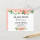 Pêssego do Orçamento - Coral e Eucalyptus Greenery Moderno e Elegante Primavera Floral de Aquarelas Nós Mudamos Novos Cartões de Casa ou Novos Endereços - inclui uma bela e elegante tipografia de roteiro com flores botânicas modernas e verde para a celebração especial Nova Casa ou Novo Endereço.