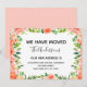 Peach - Coral e Eucalyptus Greenery Modern and Elegant Floral Watercolor Primavera Nós Mudamos para Nova Casa ou Novos Cartões - inclui uma bela e elegante tipografia de escrita com flores botânicas modernas e verde para a celebração especial do Novo Lar ou Novo Endereço.