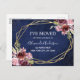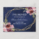Borgonha, Marinho Azul e Rosa Esbranquiçado Moderno e Elegante Floral Cloridolor Faux Gold Foil Geométrico Primavera I Moved New Home ou New Address Cards - inclui bela e elegante tipografia de script com flores botânicas modernas e verde para a celebração especial New Home ou New Address.