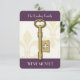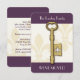 Avise a todos onde encontrá-lo com estes anúncios comoventes com uma chave de esqueleto de estilo antigo Fleur de Lis dourada em uma beringela roxa, esbranquiçada e design dourada.