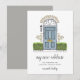 Anúncios encantadores e modernos e em movimento deixam amigos e familiares saberem sobre sua nova moradia! Design apresenta uma ilustração de porta azul clara esboçada, flanqueada com arbustos verdes, com seu título personalizado (mostrado com "meu novo endereço") abaixo. Personalize com seu novo endereço e nome em uma combinação chic de serif e caligrafia.