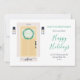 Avise seus amigos e família que você se mudou com este anúncio maravilhosamente projetado. Esta simples carta tem uma porta amarela moderna decorada com coroas de férias.