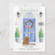 Anuncie seu novo endereço com nosso anúncio de na moda apresentando um poodle, porta azul da frente, tapete de boas-vindas, letreiro, topiários e uma coroa floral em um fundo de tijolo de cinza.