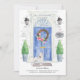 Anuncie seu novo discurso com nosso anúncio de na moda, com um poodle branco, porta azul da frente, tapete de boas-vindas, letreiro, topiários e uma coroa floral em um fundo de tijolo de cinza.
