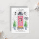 Anuncie seu novo discurso com nosso anúncio de na moda, com uma porta rosa da frente, tapete de boas-vindas, letreiro, topiários e uma coroa floral em um fundo de tijolo de cinza.