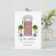 Anúncios bonitos e modernos e comoventes deixam os colegas, amigos e familiares conhecerem você como uma nova casa! Os recursos incluem uma ilustração de porta rosa esboçada adornada com árvores verdes com seu título personalizado embaixo. Personalize com seu nome e novo endereço em um duo na moda de script e fontes de serif.