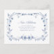 Estas lindas, poeirentas, azuis e brancas mudanças de endereço postais apresentam um quadro floral azul-aquarela vintage com lindas folhas botânicas e flores, e caligrafia na moda, juntamente com texto clássico. O quadro envolve as suas novas informações de endereço, num simples fundo branco. O design de pelúcia azul francês é uma maneira elegante de deixar amigos e familiares saberem que vocês se mudaram.