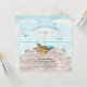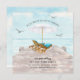 Anuncie seu novo endereço para seus amigos e família com nossa linda cena do oceano de aquarela com uma doca de madeira e cadeiras de salão azul.