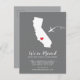Anúncio de mudança moderno com o estado da Califórnia com um coração vermelho e avião em um fundo cinza. A cor do fundo pode ser alterada facilmente clicando em personalizar e, em seguida, clique para personalizar ainda mais para ver nossa paleta de cores. A partir daí, você também pode mover o avião e o coração! Entre em contato com nossa loja se precisar de ajuda ou precisar de outro estado.