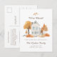 O cartão postal de anúncio de mudança de outono apresenta uma linda casa e árvores de outono pintadas à mão em aquarela. Personalização disponível na frente e no verso do cartão postal.