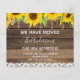 Móveis Rústicos com Orçamento, Madeira, Luz de Corda e Flores de Girassol Amarelo e Renda Cartões de Novo Lar ou Novo Endereço - inclui uma tipografia de roteiro bonita e elegante com floral moderno para a celebração especial de Novo Lar ou Novo Endereço.
