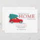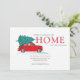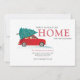 Não há melhor altura para enviar as saudações da sua época e as notícias da sua nova casa com este moderno carro vermelho com uma árvore de Natal no telhado para que eles saibam que você está passando as Férias em uma nova casa. O texto neste modelo é simples de personalizar clicando no botão "Personalizar" acima.