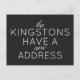 Anúncio de cartão de novo endereço com tipografia e fonte modernas. As cores podem ser alteradas facilmente clicando em personalizar e, em seguida, clique para personalizar ainda mais para ver nossa paleta de cores. Entre em contato com nossa loja se precisar de ajuda.