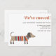 Apresentando um cão Dachshund divertido e peculiar, perfeito para amantes de cães que querem compartilhar suas interessantes notícias com um toque de humor. A frente apresenta uma ilustração esbranquiçada de um Dachshund vestindo tricôs listrados brilhantes e brincalhões. Quer você esteja se mudando pela cidade ou pelo país, este anúncio é uma maneira excelente de manter seus amigos e família atualizados em seu novo endereço. Prepare-se para abanar a cauda em entusiasmo! Arte original de Nic Squirrell.