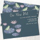 Apresentando um sapo de aquarela divertido sentado em uma almofada de lírio-d-água sobre um fundo verde-negro. O texto lê Nosso Novo Pad e pode ser alterado se você preferir. Personalize com seu nome e novos detalhes de endereço. O reverso apresenta um padrão de sapo correspondente. Arte original de Nic Squirrell.
