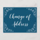 Cartão postal de anúncio de mudança de endereço com caligrafia elegante. Cartões postais de mudança com design de espirais elegantes. Texto de mudança personalizado; Nós nos mudamos! Adicione seu novo endereço no verso. Cartões de mudança sofisticados para nova casa ou local de negócios. Tipografia de texto em caligrafia elegante e sofisticada. Altere a quantidade para obter o preço mais barato por cartão. Aparência retrô vintage bonita.