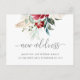 Script de caligrafia simples e elegante de "novo endereço" com um belo buquê floral de aquarela e novo anúncio móvel de informações de endereço.