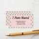 Você pode personalizar o texto preto com seu nome e novo endereço. No topo, você pode personalizar a escrita preta que diz "Mudei de Endereço". Este anúncio de mudança de Natal rosa claro tem um padrão de árvores de Natal cor-de-rosa na frente e atrás.