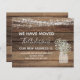 Orçamento Rustic Farmhouse Wood, String Light e Jar of Baby's Breath Flowers Nós Movemos Novos Cartões para Casa ou Novos Cartões - inclui uma bela e elegante tipografia de script com moderna floral para a nova casa especial ou a celebração do novo endereço.