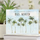 Anúncio de mudança moderno com belas palmeiras tropicais em aquarela. Vire nosso anúncio de mudança para ver uma parte de trás coordenada para um toque extra especial.