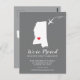 Anúncio de mudança moderno com o estado do MISSISSIPPI, com um coração vermelho e avião em um fundo cinza. A cor do fundo pode ser alterada facilmente clicando em personalizar e, em seguida, clique para personalizar ainda mais para ver nossa paleta de cores. A partir daí, você também pode mover o avião e o coração! Entre em contato com nossa loja se precisar de ajuda ou precisar de outro estado.