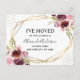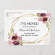 Moderno e Elegante Floral Dourado Faux Folheado Geométrico Aquarela Primavera Borgonha e Rosa Flores Florais Moved Casa Nova ou Novo Endereço cartões - inclui bela e elegante tipografia manuscrita com flores modernas e folhagens para a celebração especial de Nova Casa ou Novo Endereço.