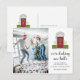 Compartilhe seu novo endereço com amigos e familiares, junto com uma foto de sua nova e bela casa, com nossos cartões-postais de anúncio de mudança fotográficos elegantes para a temporada de festas. O design apresenta sua foto favorita da família ou da casa ao lado de um anúncio festivo ("estamos decorando novos salões"), seus nomes e novo endereço encimados por uma ilustração desenhada de uma porta da frente vermelha com uma coroa verde.