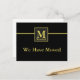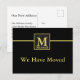 O texto dourado falso tem um monograma personalizado com o sobrenome sob a letra. O texto mostrado diz: 'Nós nos mudamos'. No verso, você pode personalizar seu cartão com seu novo endereço e outras informações desejadas.