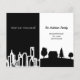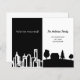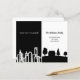 Um cartão de anúncio de mudança elegante e minimalista de uma vida na cidade para uma vida rural no campo. Preto e branco com uma silhueta da cidade e uma casa rural. Personalize e adicione seu novo endereço e mensagem para familiares e amigos.