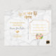 PixDezines mármore branco, Estamos acima da lua, em escrita cursiva dourada falsa, com um coração dourado para cartões-postais de anúncio de nascimento para foto, com cor de fundo e fontes DIY.