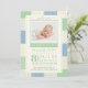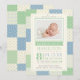Celebre a sua chegada com este anúncio de nascimento personalizado do Photo Blue e Green Quilt. Feito com um design de estilo colcha em verde e azul, você pode adicionar o nome do seu bebê, data de nascimento, peso, comprimento e hora de nascimento. Personalize com a sua foto favorita de recém-nascido para criar um design único que seja perfeito para compartilhar suas notícias com a família.