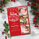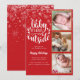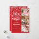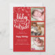 Um cartão de anúncio de nascimento de férias com colagem de 3 fotos elegante para você personalizar com suas 3 fotos especiais em molduras douradas, mensagem de férias, nomes e estatísticas de nascimento. O verso apresenta flocos de neve caindo. Você pode personalizar a cor do fundo para combinar com o tema das suas férias. Criado por Thisisnotme©