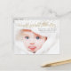 Estrelas douradas cintilantes caem ao redor de um doce bebê (personalize com a foto do seu recém-nascido) com "brilha, brilha, estrelinha" em uma fonte com efeito de glitter dourado sofisticado (nota: nenhum glitter ou folha de ouro será impresso no papel - será impresso apenas para parecer glitter dourado). Este cartão de anúncio de nascimento é simples, chique e doce, com a fonte adicionando um toque elegante. Use uma foto do bebê em um fundo branco macio, para que o texto seja legível e as estrelas se destaquem. Opcionalmente, não se esqueça de verificar o verso, onde você pode enviar outra foto do bebê em uma moldura polaroid divertida e adicionar uma mensagem calorosa e pessoal ao cartão! Perfeito para menino ou menina.