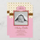Um anúncio de nascimento personalizado moderno para uma garota. Adicione sua própria foto e palavras. Apresenta as iniciais do bebê em monogramas e uma bolinhas de fundo fofinha em rosa e marrom. Clássico, mas brincalhão.