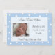 Legal bolinhas brancas e uma leve sombra de azul rodeiam o seu novo filho. Todos ficarão entusiasmados em receber este anúncio fotográfico. O carimbo de coordenação e o envelope estão igualmente disponíveis.