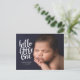 Anúncio de nascimento moderno com uma foto na frente e quatro atrás, acompanhado de um roteiro elegante de caligrafia branca. Todas as cores podem ser personalizadas. Pode ser personalizado com sua própria mensagem e estatísticas de bebês.