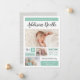 cartões com fotos de anúncio de nascimento de bebê impresso por barato. Este moderno design minimalista apresenta um layout de colagem de fotos com blocos de cores de menta que podem ser personalizados mudando a cor de fundo para qualquer cor. Personalize-o com o nome do bebê e as estatísticas de natalidade e as suas fotos. O verso apresenta um padrão de faixa bonito, desenhado à mão, ou usa o espaço para adicionar fotos e texto, se necessário. Clique em Personalizar para escolher qualquer cor de fundo, adicionar mais fotos e personalizar fontes e cores de texto para criar um anúncio exclusivo de nascimento de um bebê gentil para seu recém-nascido.