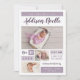cartões com fotos de anúncio de nascimento de bebê impresso por barato. Este moderno design minimalista apresenta um layout de colagem de fotos com blocos de cores roxos que podem ser personalizados mudando a cor de fundo para qualquer cor. Personalize-o com o nome do bebê e as estatísticas de natalidade e as suas fotos. O verso apresenta um padrão de faixa bonito, desenhado à mão, ou usa o espaço para adicionar fotos e texto, se necessário. Clique em Personalizar para escolher qualquer cor de fundo, adicionar mais fotos e personalizar fontes e cores de texto para criar um anúncio exclusivo de nascimento de um bebê gentil para seu recém-nascido.