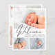 Um anúncio de nascimento simples e elegante, favorável ao orçamento. A frente apresenta uma colagem de 3 fotos de seu recém-nascido, sobrecarregado com "Bem-vindo" em um roteiro moderno da na moda, e o nome do seu bebê, data de nascimento e estatísticas de natalidade em um clássico serif typogrpahy. No verso, adicione outras 3 fotos e sua mensagem personalizada. Este papel semirbrilhante do orçamento é semelhante em peso ao papel fotográfico. Uma versão tradicional do estoque do cartão também está disponível (mensagem para o link).