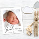 Um anúncio de nascimento de bebê neutro em relação ao gênero, favorável ao orçamento. A frente apresenta a foto do seu recém-nascido, o nome do cheio, a data de chegada e as estatísticas de natalidade, e "Bem-vindo" escrito em um roteiro de na moda. No verso, você pode adicionar três fotos adicionais e nomes de pais e irmãos, e um obrigado, visitação ou outra mensagem.