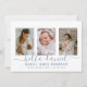 O que torna este anúncio de nascimento especial é que ele mostra: uma foto de bebê sozinho, bebê e mãe nova, e bebê e novo papai, além de outra foto de bebê nas costas com estatísticas de nascimento. Adicione um tipo de script moderno e ofereça aos amigos e à família um instantâneo da nova família, com 4 fotos no total. Substitua essas fotos marcadoras por suas fotos carinhosas.