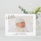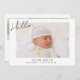 Anuncie sua mais recente chegada em estilo com este moderno cartão de anúncio de nascimento minimalista. A frente mostra uma doce foto do seu bebê com um roteiro elegante de "Olá" e detalhes personalizados de natalidade, incluindo nome, data, peso e comprimento. O verso apresenta uma colagem de fotos e uma mensagem de gratidão sentida aos amigos e à família. Celebre a chegada do seu bebê com esta carta encantadora que destaca lindamente todos os detalhes essenciais. Perfeito por compartilhar sua alegria e apreço com entes queridos de uma forma eterno e elegante.
