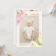 Este cartão de na moda e elegante anúncio de nascimento de foto em frente e verso apresenta quatro (4) fotos (frente e verso) de sua bebê recém-nascida, texto personalizado que pode ser personalizado, ilustração feita a cores d'água pintada manualmente de uma câmera cor rosa e flores brancas de magnólia. Personalize este modelo, adicionando o nome do seu bebê recém-nascido, o registro de nascimento e os nomes dos pais.