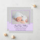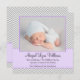 Anuncie o nascimento da sua filha em estilo com este adorável anúncio de nascimento de uma menina. Apresentando um padrão quevron de cinza moderno e sotaque de roxo. Personalize facilmente com suas informações! A FOTO DA AMOSTRA NÃO ESTÁ INCLUÍDA. SUBSTITUA POR SUA PRÓPRIA FOTO ANTES DE ENCOMENDAR.