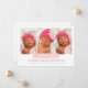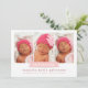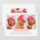 Um design nítido, limpo e moderno apresenta espaços para três fotos grandes na frente e três fotos menores na parte de trás. Com uma bonito faixa na frente, em rosa rosado e macio sobre branco, este olhar contemporâneo é perfeito para apresentar sua linda nova menina ao mundo.