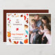 Esta saudação de fotos de Ação de Graças também serve como um anúncio de nascimento. Apresenta um padrão colorido de queda e uma imagem vertical na frente. O texto aparece na caixa branca e é muito simples e mínimo. O verso oferece uma fotografia adicional para uma imagem do texto recém-nascido e personalizado para os detalhes do seu nascimento de recém-nascidos. Fotografia © Storytree Studios, Stanford, CA