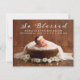 Um anúncio de nascimento com as palavras, Tão Abençoado, e o nome do bebê e as estatísticas de nascimento por baixo. Por trás do cartão há espaço para mais 3 fotos. Personalize-o com as fotos do seu bebê e as informações de parto. Faz um adorável cartão de anúncio de bebê. Projetado para você pela Blackberry Boulevard